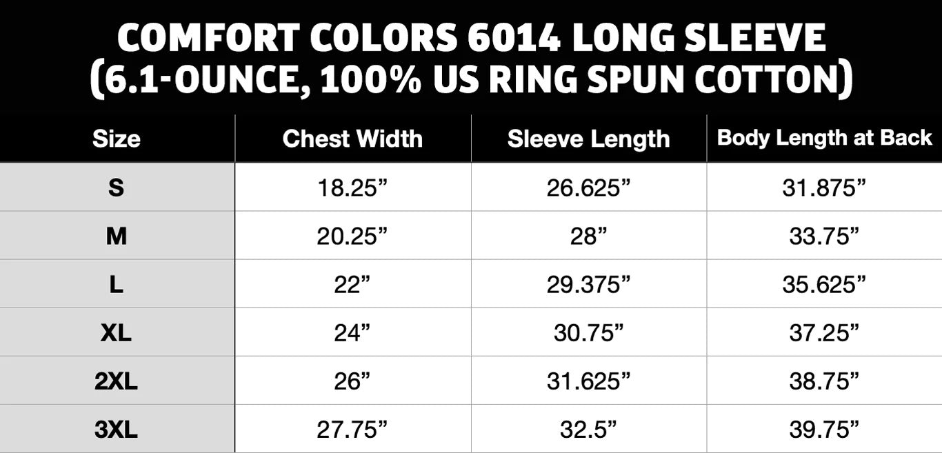 These are printed on [Comfort Colors 6014] Longsleeve T-Shirts! Durable, sturdy, soft feel! Ringspun cotton. You know what to expect.